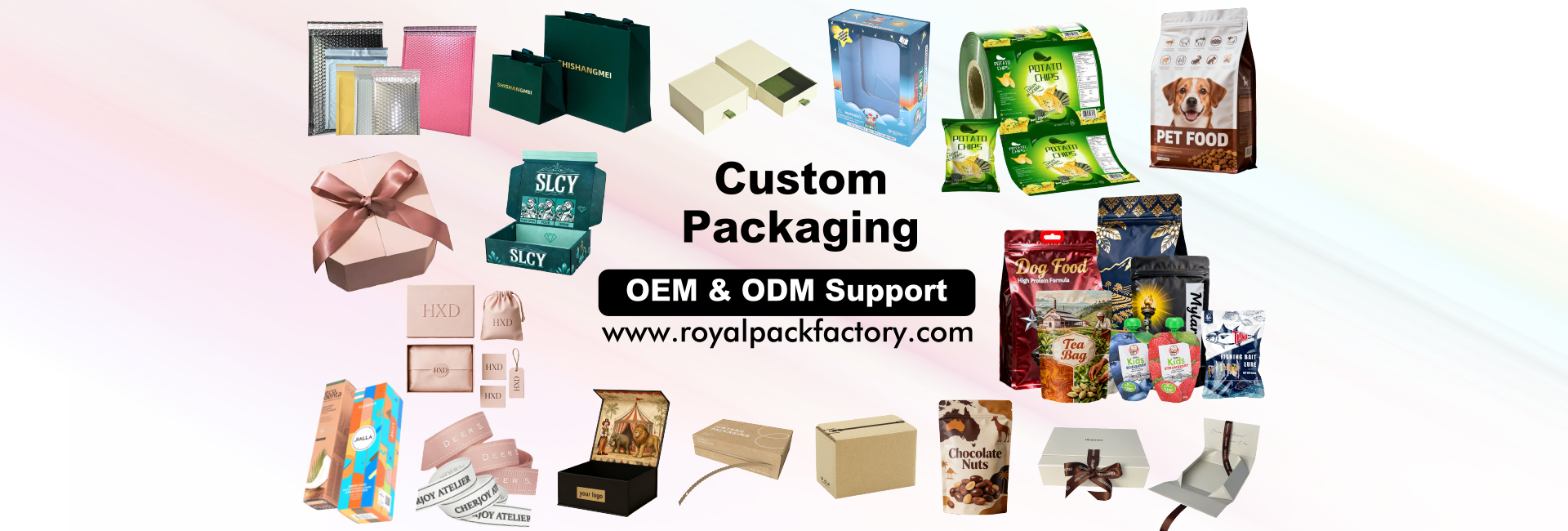 Welcome to royalpackfactory.com, your ideal ultimate factory for custom packaging. We produce a wide variety of packaging products to meet all your needs – whether it's paper boxes, custom box packaging, eco-friendly packaging, and a variety of options such as rigid boxes, gift boxes, jewellry boxes, perfume packaging, luxury goods packaging, bags, stand-up pouches, eight-side seal bags, three-side seal bags, roll plastic film, or exquisite gift boxes, food packaging, and pharmaceutical packaging solutions.